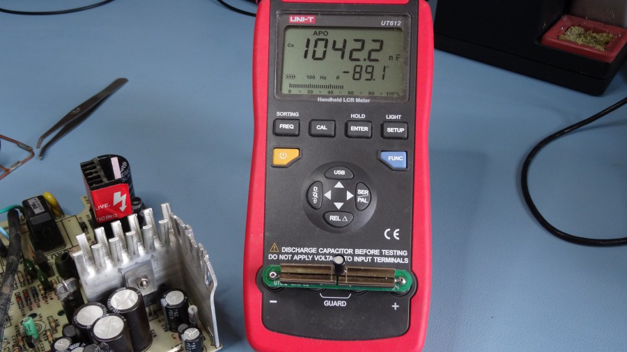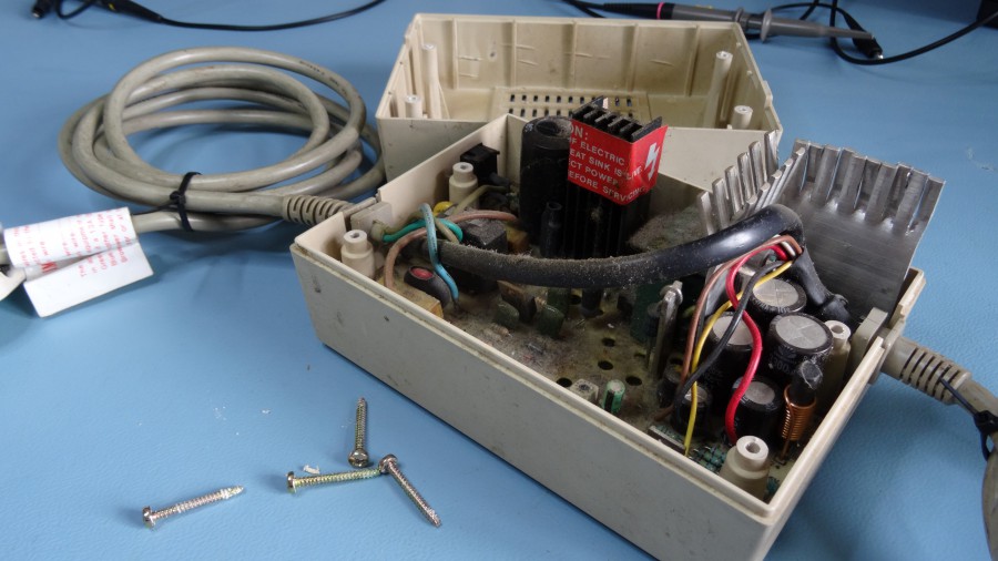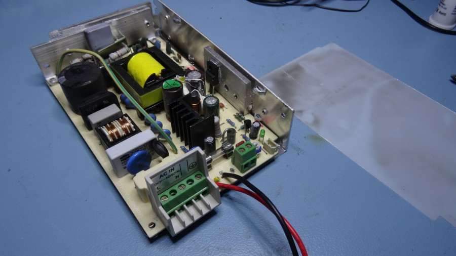 Oprava průmyslového napájecího zdroje pro CCTV. Výměna kondenzátorů a oprava zpětnovazební reference napětí, testování